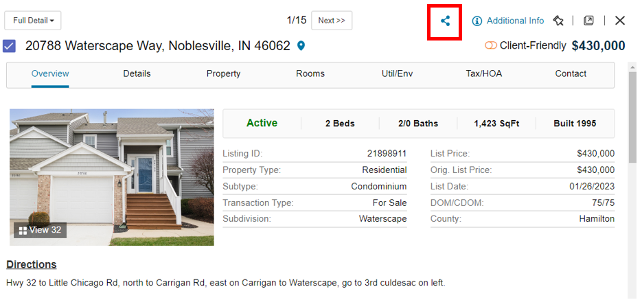 NOTE: If using the Print PDF function and attaching a listing in an email external from the system, this is a static capture. The drawback to this process is that if anything on the listing is changed from the time of delivery to the time the client opens it, the client will be viewing outdated data.